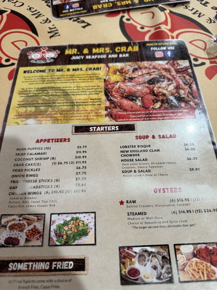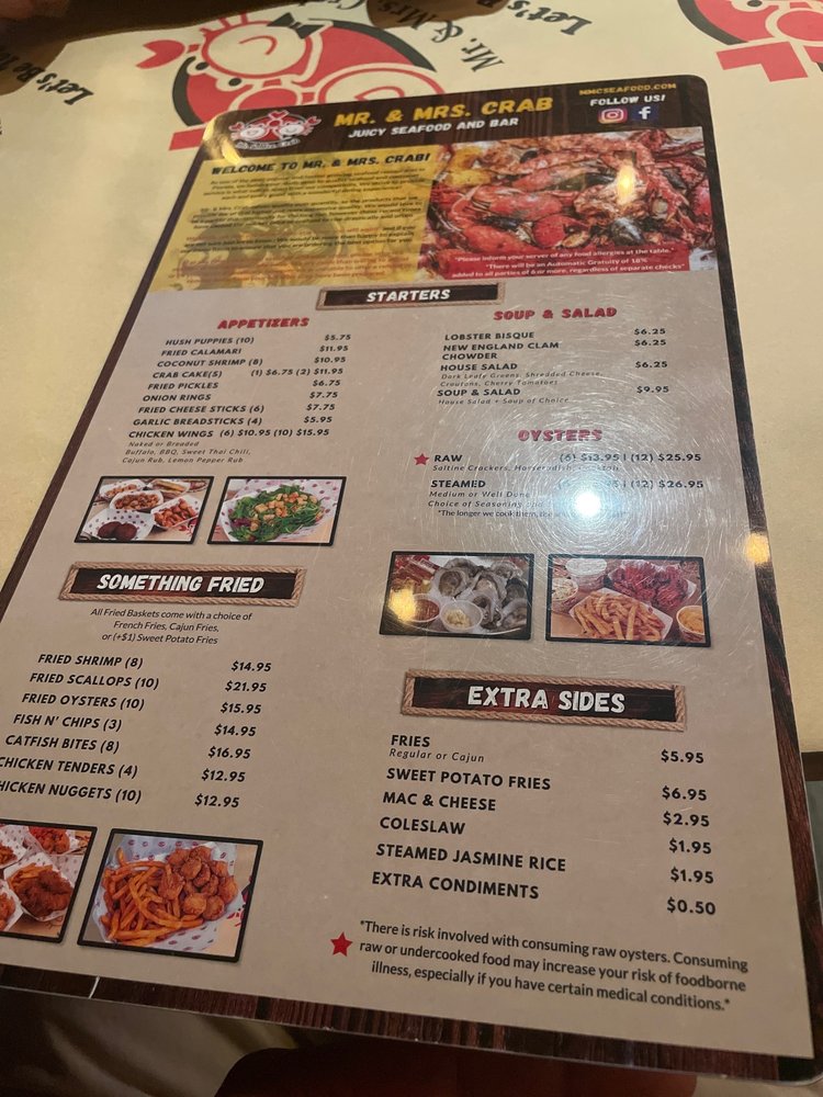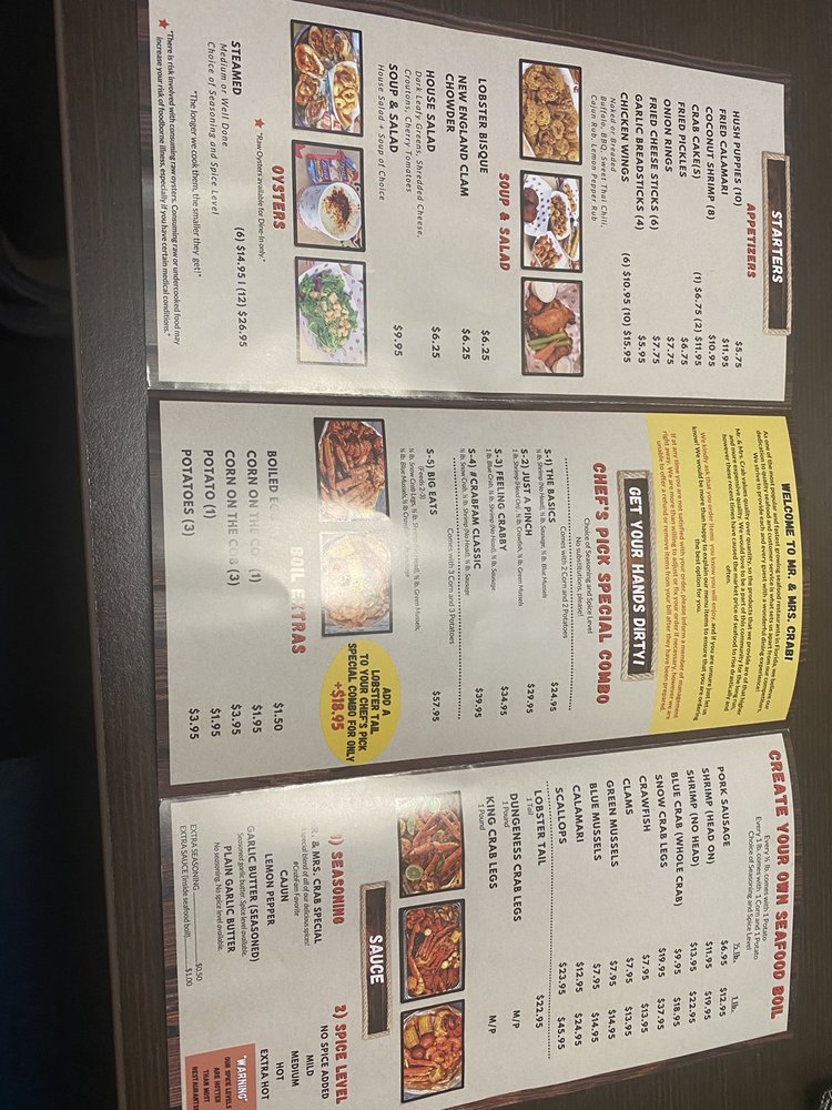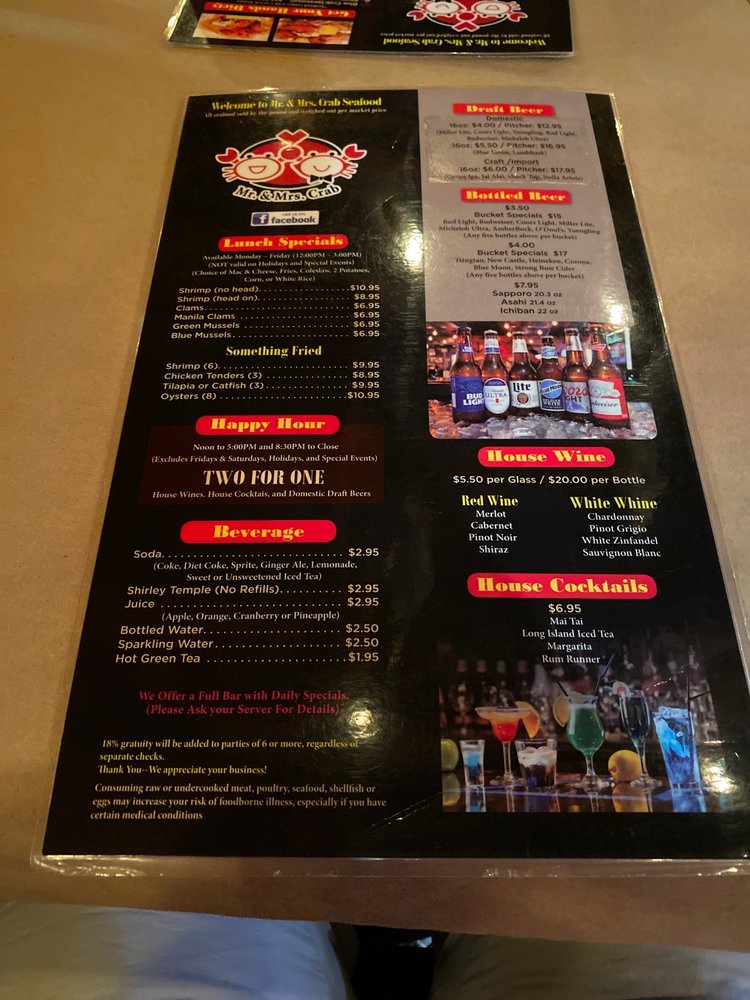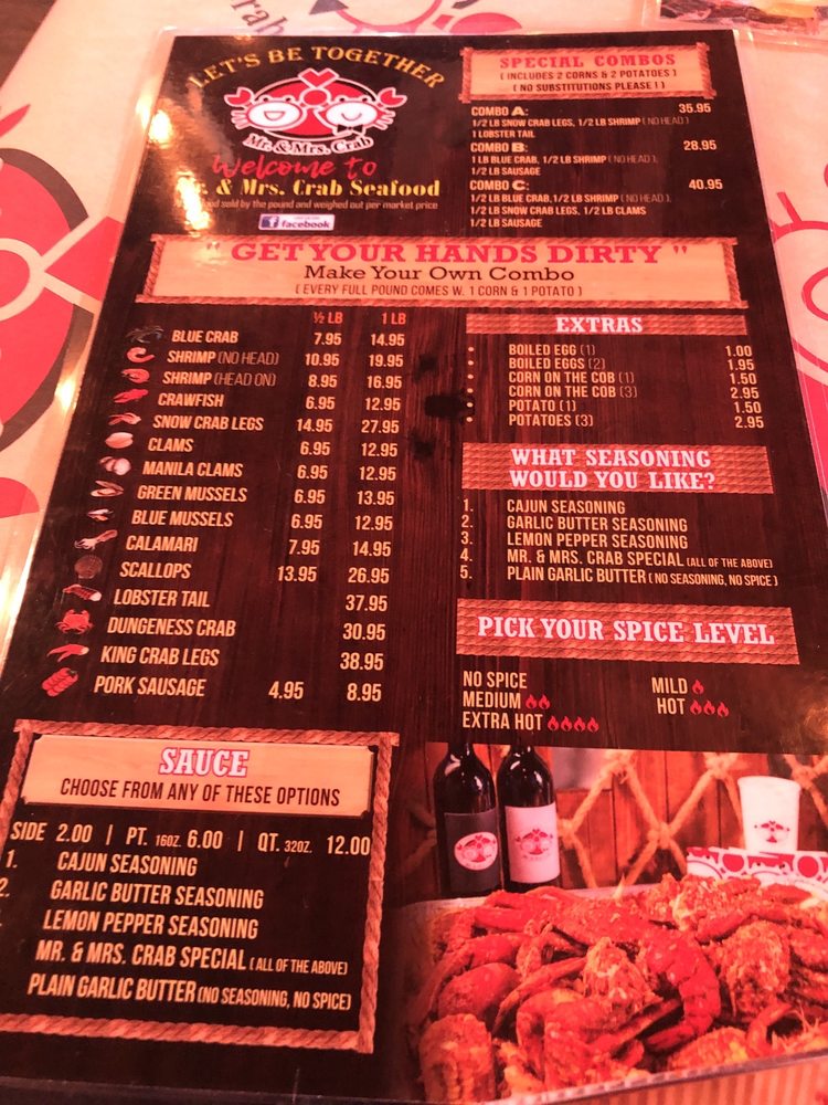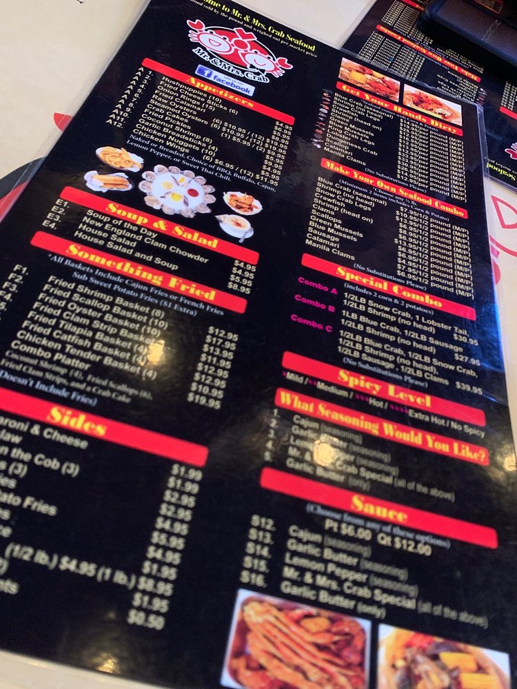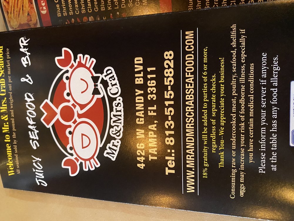 Introducing the menu at Mr and Mrs Crab, a seafood haven in Tampa, FL, where you can customize your own seafood boil with a variety of options. The reviews rave about the flavorful seafood boils, especially the crab legs, shrimp, and mussels. The Mr. & Mrs. Crab special sauce with a Hot spice level gets high praise, paired perfectly with corn, potatoes, and even added eggs for an extra treat. The atmosphere is lively and fun, great for groups and families. Customers appreciate the quick service and friendly staff, making dining here a delightful experience. Despite the messiness of digging into shellfish with gloves and a bib, the flavors are worth it. Overall, Mr and Mrs Crab offers a unique dining experience with top-tier seafood dishes that leave customers coming back for more.